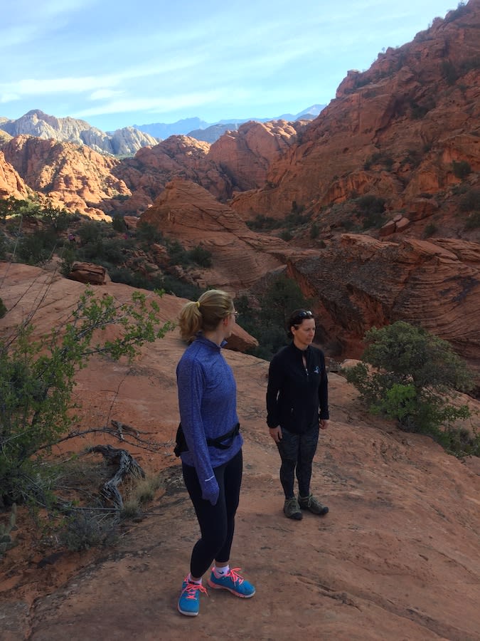 In April of this year, I took the plunge and joined the team in Utah for a 10 day training camp. Probably the most exhilarating and exhausting holiday I have ever taken. To be able to have access to your coaches while riding, running and swimming for 10 days is absolutely priceless. I learned so much while having so many laughs, smiles, and high 5’s. One of the big challenges for me at this camp was a 7k climb up beautiful Snow Canyon. Simply put, I did not want partake in this ride as I am not a good climber. Coaches Julia and Martin rode alongside of me the whole way up, helping me to pick the right gears and cadence. Their encouragement got me to the top and I guess what, I was still smiling. What more could I ask for?